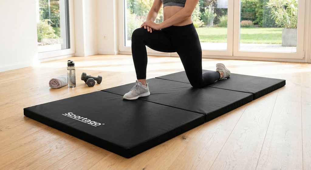 Sportago Gymfold je profesionální trojdílná skládací podložka navržená pro maximální komfort a bezpečnost při široké škále aktivit – od gymnastiky a bojových umění až po intenzivní fitness trénink nebo rehabilitaci. Díky své tuhosti a nadstandardní tloušťce poskytuje nekompromisní oporu a ochranu kloubů při dopadech.